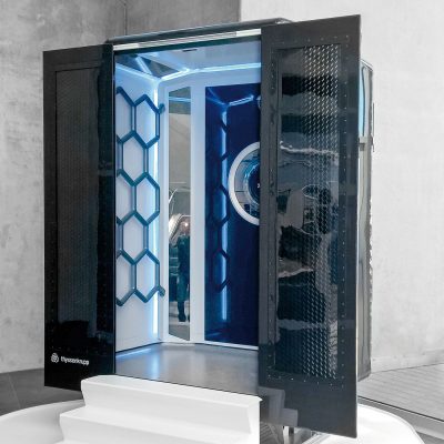 Zukunft wird schon heute Realität.Die Kabine des neuen Multi-Aufzugsystems weist durch ihr raffiniertes und preisgekröntes Design den Weg: Extremer Leichtbau schafft hohe Gewichtsreduktion bei höchsten Ansprüchen an Form und Festigkeit. Größte Geschossanzahlen in Mega-Gebäuden können so ohne Umsteigen bewältigt werden. Die richtungsweisende Idee, Aufzüge auch horizontal zu bewegen, schafft für Architektur, Planung und Investoren völlig neue Möglichkeiten – z. B. kann sich der Gast in Hotels vom Aufzug direkt zum Zimmer bringen lassen.
